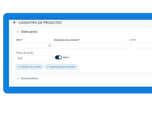 Cadastre seus produtos, clientes e fornecedores com poucas informações obrigatórias. Realize cadastros de grades de produto de forma muito simples.